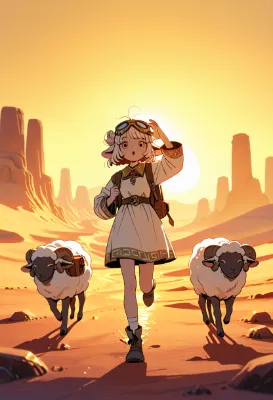 黄金の草原に立つ勇敢なライオン冒険者。彼の頭上には、古代遺跡や浮遊する城、遥かな空の旅が浮かび上がる。幼い頃から語り継がれる伝説に心奪われ、今、拳を握りしめて新たな旅立ちの瞬間を迎える。夕陽が照らすサバンナの風に乗り、未知の世界を探検する彼の物語が始まる。どんな出会いや試練が待っているのか、想像が膨らむ冒険の幕開けだ。