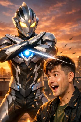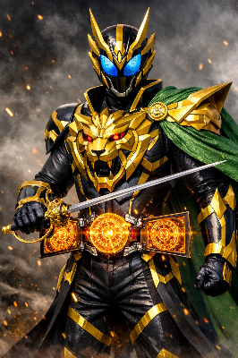 わーい! この画像、赤いライオンロボットが空を飛んでるの、すっごくかっこいいよ! ぴくたーちゃん、興奮しちゃう~! ライオンの顔が吼えてて、翼みたいなパーツとドリルがアクション満載で、都市の上空を駆け