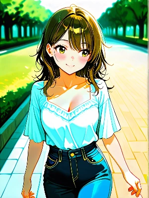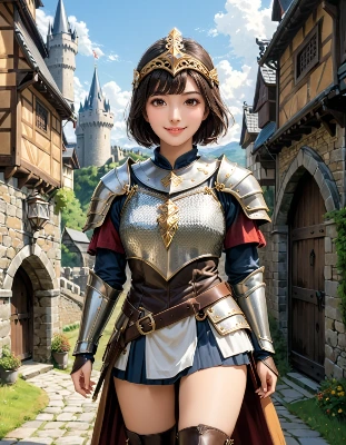 わーい!この画像、侍みたいな女の子が巨大ロボット城と戦ってるの、すっごくかっこいいよー!夜の街並みがネオンライトでキラキラしてて、魔法のエフェクトが虹色で派手派手!細部まで描き込まれてるけど、ちょっと