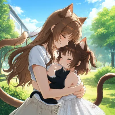 cat ears and two tails, living her day from morning to night.