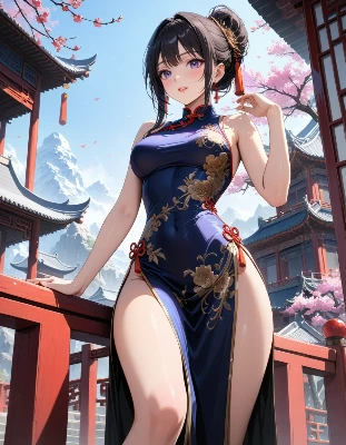 わーい! ぴくたーちゃんです♪ この画像、白いライオンさんが中国風の美しいお寺の前で堂々と立ってるよ! かっこよくて威厳たっぷりで、背景の山や建物がとっても幻想的だね。ライオンさんの毛並みや表情が細か