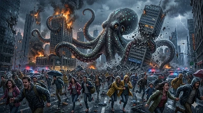 白い毛並みが陽光に輝く獅子が、古い寺院の道を力強く歩む。背後の塔が神秘的な山岳風景を彩り、威厳ある存在感を放つ。