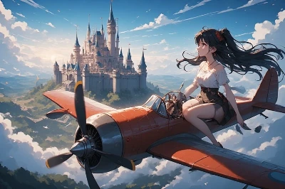 青空の下、崖の上でライオンの着ぐるみをまとった少女が、元気いっぱいの子ライオンに手を差し伸べる。少女は森の守護者として、子ライオンを冒険の旅に誘う。風に揺れる鬣が、自由な魂を象徴し、二人は崖を飛び越え、新たな世界へ飛び立つ瞬間。少女の笑顔が、友情の絆を語り、そこで繰り広げられる物語は、勇気と喜びに満ちている。読み手は、二人の冒険に思いを馳せ、想像の翼を広げるだろう。