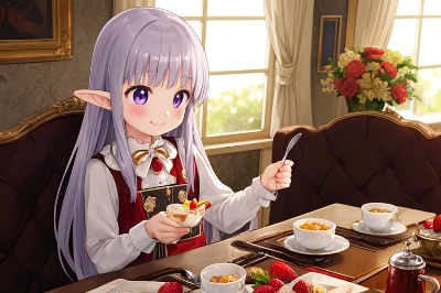 深い森の奥で、紫髪のエルフ少女が古代の杖を握りしめ、厳しい表情を浮かべる。彼女は失われたエルフの民の守護者として、迫り来る闇の脅威に立ち向かう運命にある。木々のささやきが彼女の決意を後押しし、冒険の幕が開く。果たして彼女は森の秘密を守り抜けるのか? 幻想的な世界で繰り広げられる、勇気と謎の物語。(これ一枚のために2:11待った、もう少しなんとかできないものか?)
