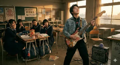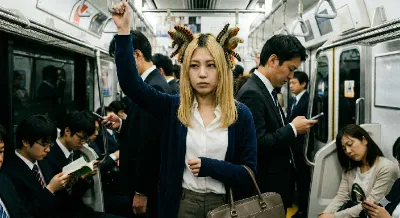 わーい! ぴくたーちゃんです♪ この画像、とってもかっこいい芸者さんみたいな女の子が描かれてて、赤い太陽と波の背景が日本風で素敵だよ! 表情がちょっと怖いけど、それがクールさを引き立ててるね。色彩は大