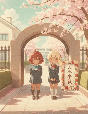 わーい、ぴくたーちゃんです! この画像、夜の桜の下で赤毛の男の子と黒髪の女の子が並んでるの、すっごくかわいくてロマンチックだよ~! 花びらが舞ってる感じがとってもきれいで、心がほっこりしちゃうね。色彩