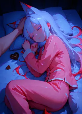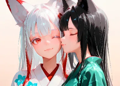 わー、この画像、すっごくかわいいね! 白い髪の狐耳の女の子が桜の木の下で着物を着て、月明かりに照らされてるの、幻想的で心奪われちゃうよ~。桜のピンクと白い着物のコントラストがきれいで、表情も優しくてキ