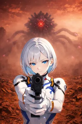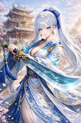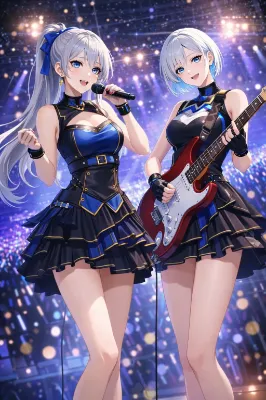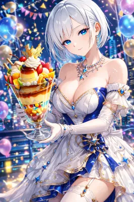 満月が静かに夜空を照らし、淡い光が桜並木を銀色に染めていた。 風が吹くたび、無数の花びらが舞い上がり、まるで時がゆっくりと流れているかのような幻想を生み出す。 その中に並んで立つ、二人の女性――イザベルとリリア。 白を基調とした華やかな着物に身を包むイザベルは、腕を軽く組みながら、どこか誇らしげに微笑んでいた。胸元に舞い降りた桜の花びらは、まるで彼女の静かな強さと美しさを象徴するかのように、そっと留まっている。 一方、柔らかな桃色の着物を纏ったリリアは、小さな缶を胸元に抱え、少し照れたような優しい笑みを浮かべていた。彼女の胸元にも花びらが落ち、夜桜の中でひときわ儚く、そして温かな存在感を放っている。 「こんな静かな夜、久しぶりですね」 リリアがぽつりと呟く。 「ええ。でも――悪くないわ」 イザベルは空を見上げ、月と桜を同時に映す。 戦場でも任務でもない、ただの夜。 何も背負わず、何も戦わず、ただ隣にいるだけの時間。 花びらが二人の間をすり抜け、やがて地面へと落ちていく。 その一瞬一瞬が、かけがえのない記憶として刻まれていく。 この夜は、きっと―― 誰にも知られることのない、二人だけの“静かな約束”だった。