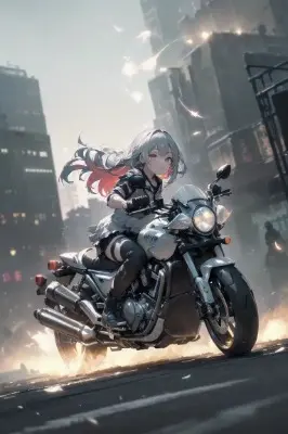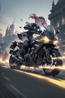 (maximalism:1.5), vivid contrast,BREAKrealistic, super photo realistic illustration, highres, ultla detailed, absurdres,best quality, (masterpiece:1.5),(ultra-detailed), (high quality:1.3),(high resolution),best quality ((masterpiece, best quality, detailed)), (sense of depth:1.5)ultra-detailed, hard rim lighting,((dramatic lighting)),sharp focus,BREAK(colorful:1.5), blooming light effect,suspended moments,distorted reality,kaleidoscopic views,natural lenses,ephemeral glimpses,Burning Edge,dust effect,Slow Motion,Particle,colorful refraction,feathers Falling,BREAK(full body motorcycle:1.5), ((speeding) motorcycle the city at high speed:1.7), (slow motion:1.2),(speed lines:1.4), sense of speed, (solo, 1girl), smirk face,large breasts,(dynamic angle:1.5),(outdoors, morning, in front of castle gate:1.4),cinematic lighting,sparks and smoke coming out of tires, (goggles:1.5), (dutch angle:1.5)BREAK((kawaii girl)), (loli:1.3),solo, one girl,(random hair color),(random eye color),(random hairstyles),shoes,dress oneself stylishly,upskirt,T-shirt,shorts trousers,mini skirt,thigh-highs,delicate clothes wrinkles,medium breast,(war:1.4),(glowing eyes:1.1),dirty,wakame