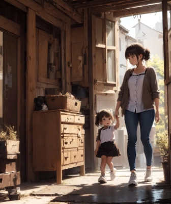 (best quality:1.4),ultraDetails exquisite extremely realistic pictures style,ink,mystic effect,8k,pastoral landscape,(good fortune:1.4),happiness,Children and mothers