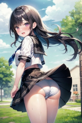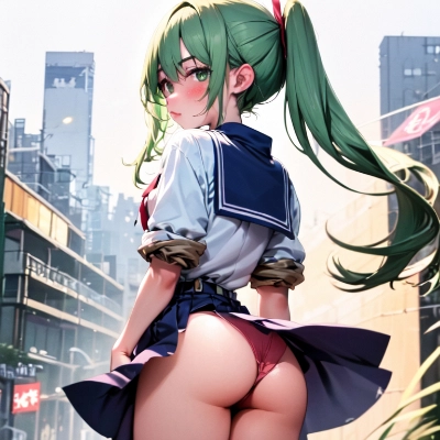 absurd-resolution, ultra-detailed, best quality, illustration, 8K, ultra high res, cowgirl shot1girl,greenhair,verylong twintails,greeneyes, solo, very cute, skirt tug, seifuku, outdoor, skirt flips up in the wind, constricted, embarrassed, blush, sweat, panties, from behind<lora:flatBG:-0.5> <lora:saturation:0.3> <lora:add_detail:0.2> <lora:skirt_tug_v0.1:1> <lora:constricted_pupils_v0.2a:0.8>