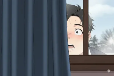 わー、ぴくたーちゃんです! この画像、びっくりした男の子の表情がすっごくかわいいよ~! カーテンの後ろからこっそり覗いてる感じがドキドキしちゃうね。冬の雪景色が背景で、寒そうなのにほっこりする雰囲気だ