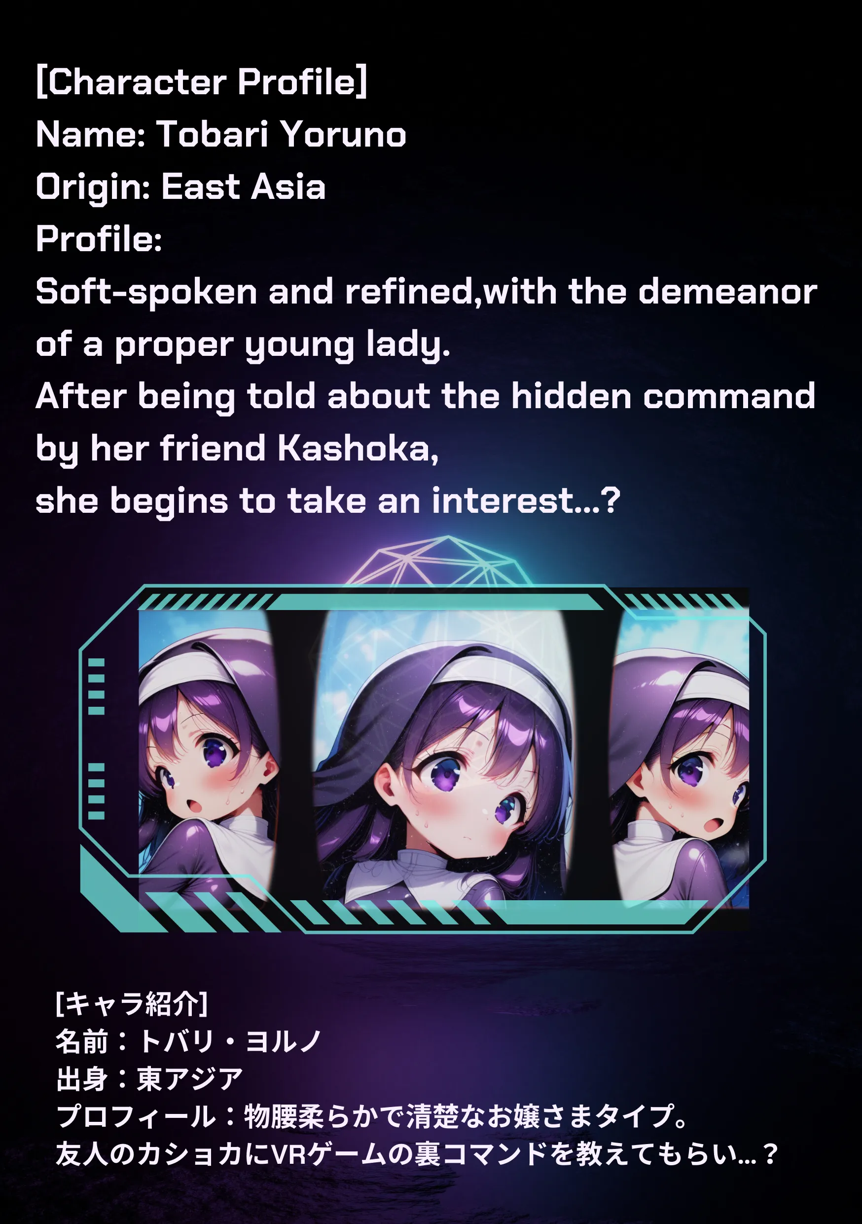 (お題解釈)コイン→「裏表で価値が変わらず、運命を左右し得るため、不可分性・表裏一体のメタファーとして用いられる」→終わらないVR世界の快楽は、現実にもフィードバックされ乙女の運命を翻弄する。あたかもコインの裏表のように…。 ※夜野 帳(よるの とばり)さんのまとめです。 ※本キャラクターは創造の自由と価値観の多様性に基づく架空の存在です。 現実の人物や状況とは無関係であり、社会への悪影響を意図したものではありません。 あくまでフィクションとしてお楽しみください。