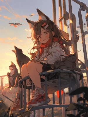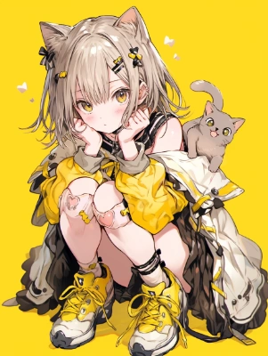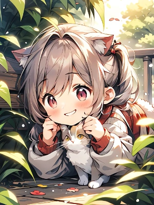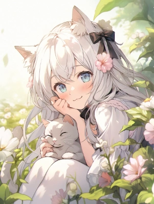 猫と猫耳女の子