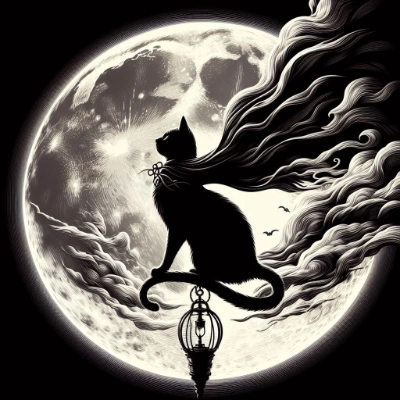 月夜の黒猫