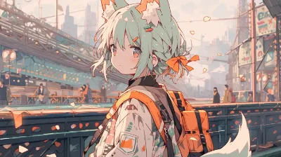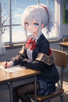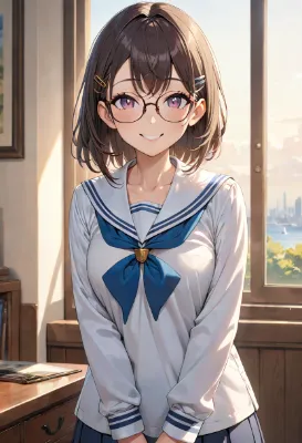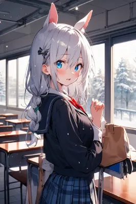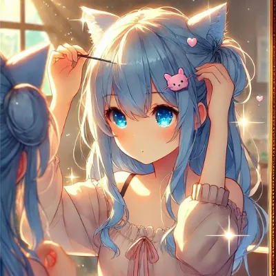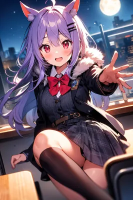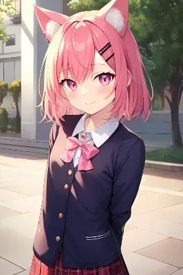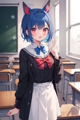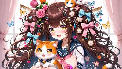 ヘアピンをした猫耳女学生