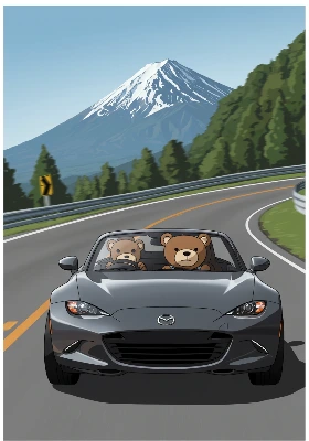 ヘアピンカーブを三輪車で攻める猫又さん