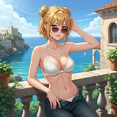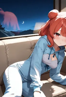 花火をバックにポッキーゲームをするアストルフォとジャンヌ