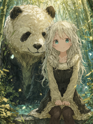 コン子とポン子・ある日、山の中パンダさんに出会った
