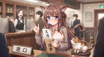 明らかに封筒に入れる書類を間違えた猫又さんと仕事ができる銀行窓口