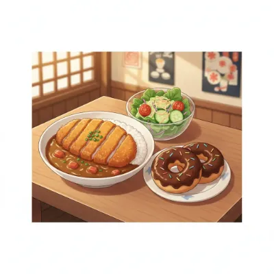 とんかつカレーライス!、サラダ!、チョコドーナツ!