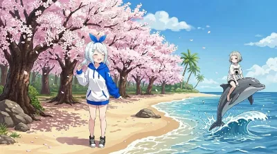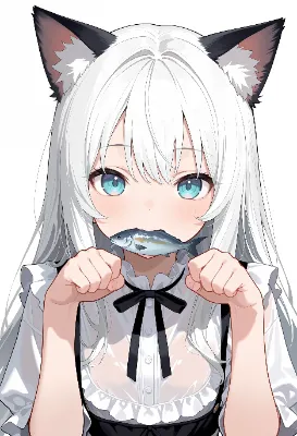 お魚くわえた猫耳娘ちゃん(さかなの日(3月7日 記念日))