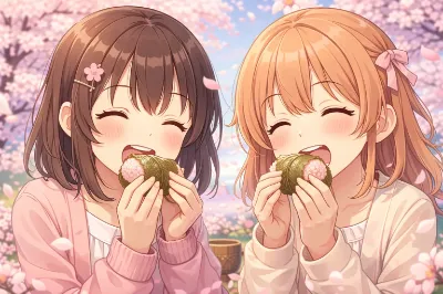 桜餅を食べる姉妹
