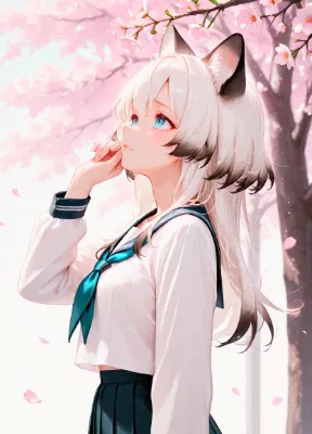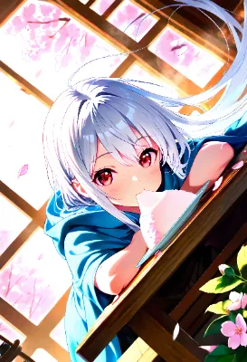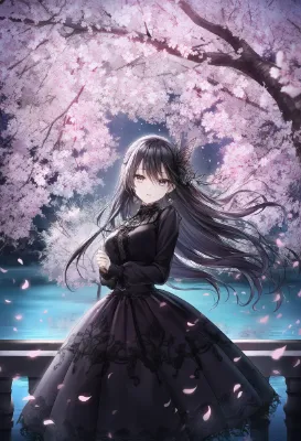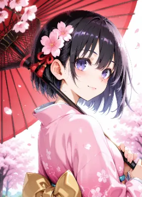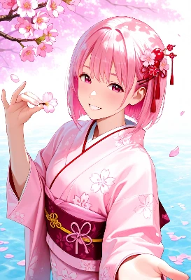 桜舞う部屋のピンク少女