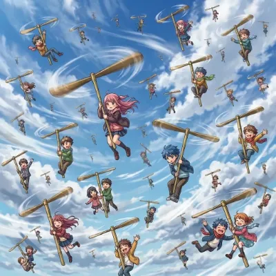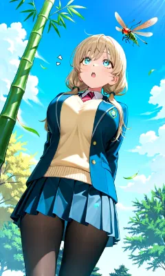 パンツを見たので竹とんぼを頭に付けて空に飛ばします