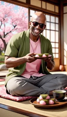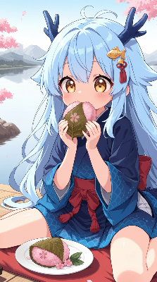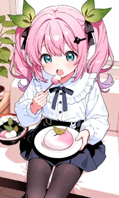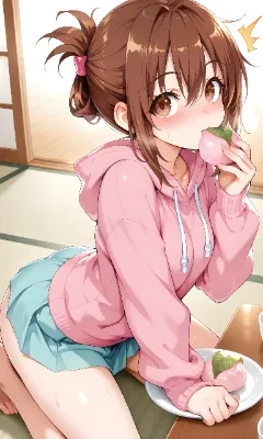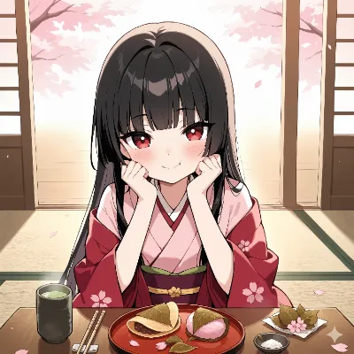 桜餅をたべるおでこちゃん