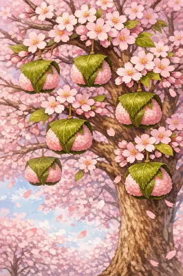 桜の木に実る梅(うめ)~桜餅