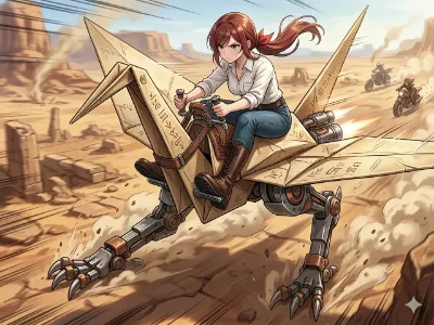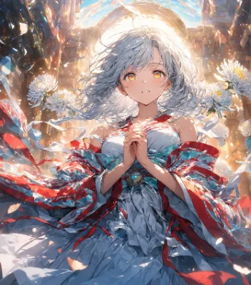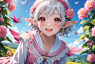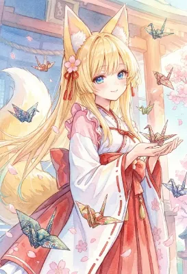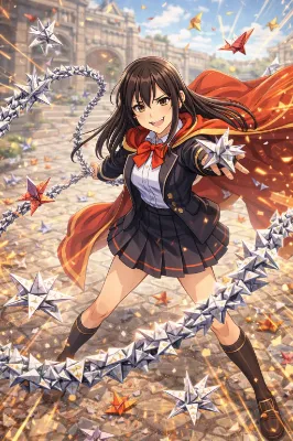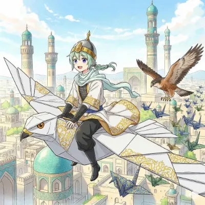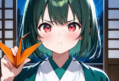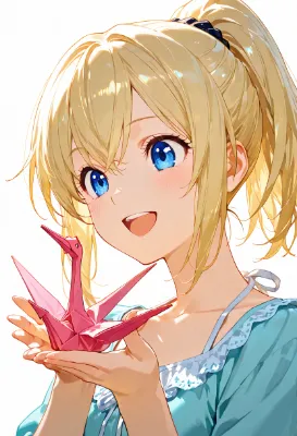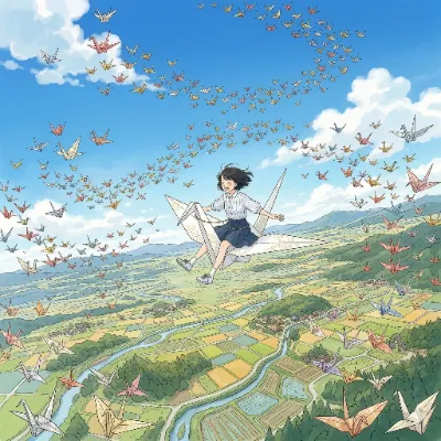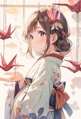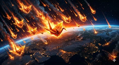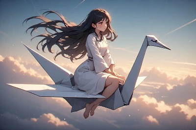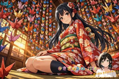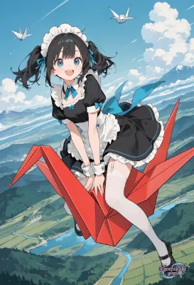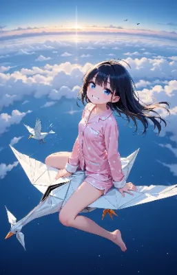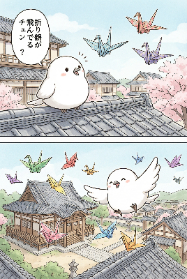 【リメイク】折り鷹に乗る黄金の兜の少年と鷹と折り鶴軍団