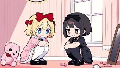気になるあの人の事を想像しながらアンティークのかわいいぬいぐるみを手入れしてあげる心優しい少女たち