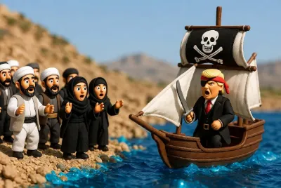 どこかの大統領っぽい海賊が中東の海峡にやってきたフリー素材