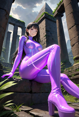 遺跡とラバースーツお姉さん