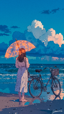 夕暮れの浜辺と自転車/スマホ壁紙アーカイブ